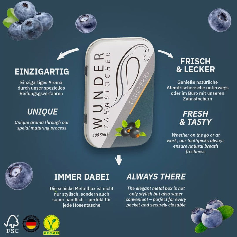 Wunder Zahnstocher - Zahnstocher mit Geschmack Blaubeere Metallbox