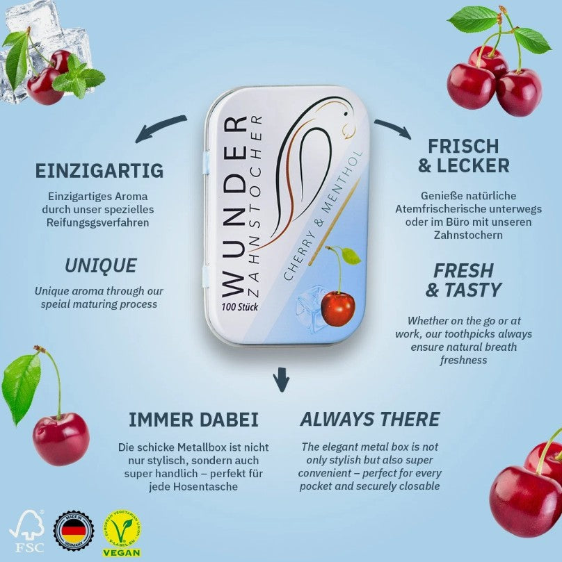 Wunder Zahnstocher - Zahnstocher mit Geschmack Kirsch/Menthol Metallbox