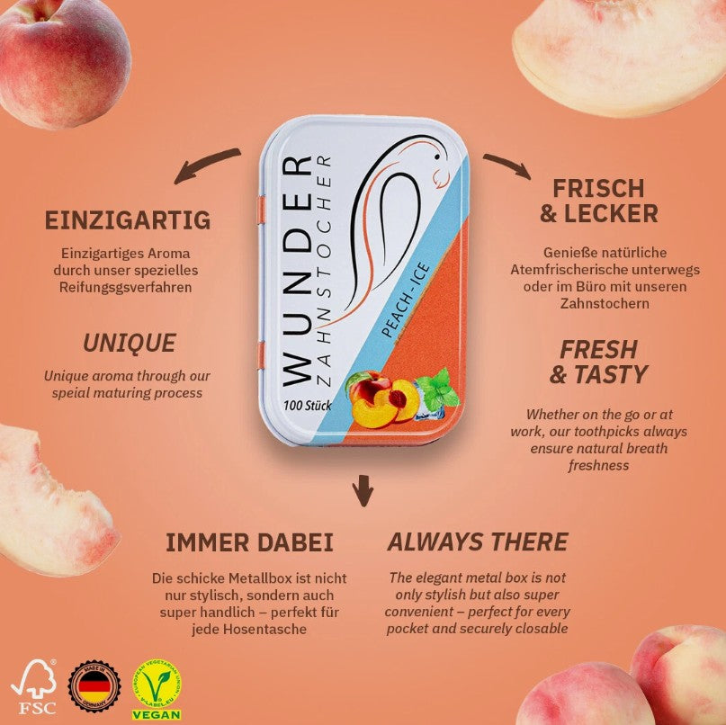 Wunder Zahnstocher - Zahnstocher mit Geschmack Pfirsich/Ice Metallbox